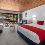 These 5 studio units are up one flight of stairs (have undercover parking). In each unit there is a kitchen which is fully self-contained, and in the main room there is a quality king size bed, single bed, sofa, table and chairs and the bathroom is off the main room. They are spacious units with 43 inch to 50 inch Smart LED TVs and a side balcony which gets the afternoon sun. Ideal to relax and enjoy a glass of wine.